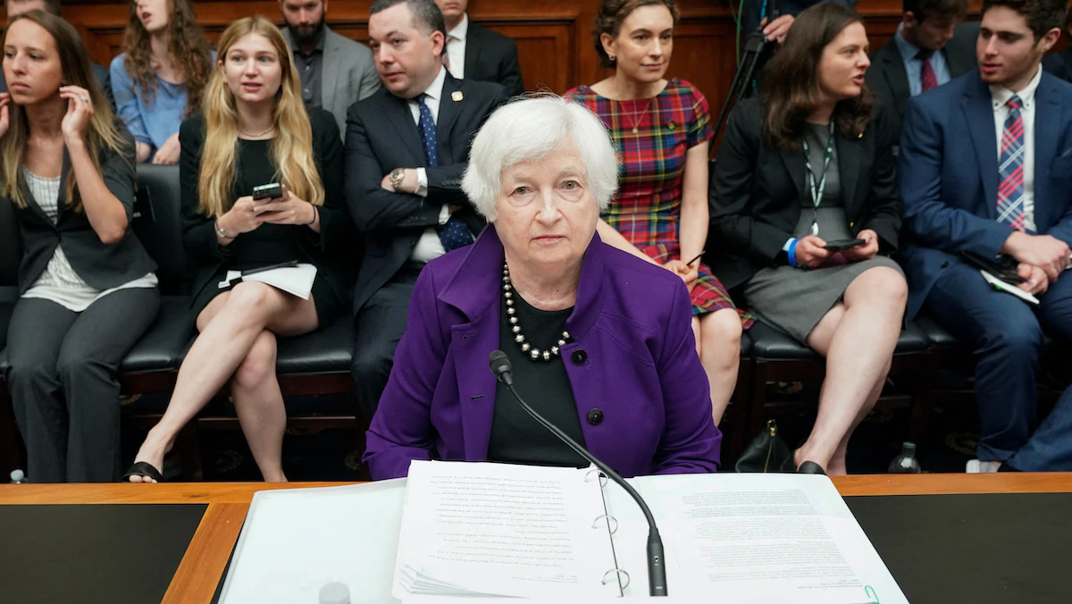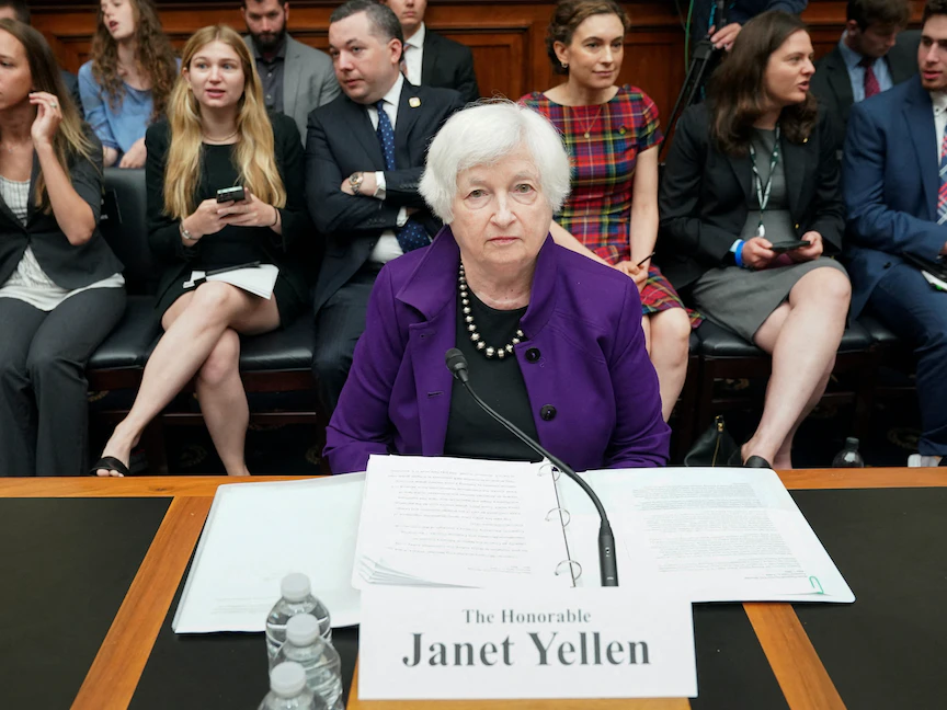 وزيرة الخزانة الأميركية جانيت يلين خلال جلسة استماع للجنة الخدمات المالية بمجلس النواب الأميركي بالعاصمة واشنطن. 13 يونيو 2023 - REUTERS