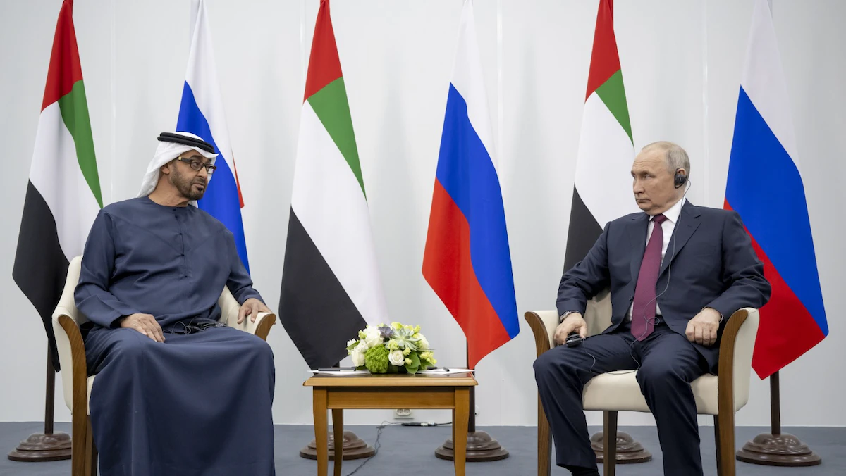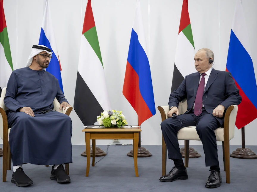أجرى رئيس دولة الإمارات العربية المتحدة الشيخ محمد بن زايد، الجمعة، مباحثات مع نظيره الروسي فلاديمير بوتين في سانت بطرسبرغ، شملت العلاقات الثنائية والقضايا الإقليمية والدولية، بحسب ما أكدت وكالة الأنباء الإماراتية "وام".
