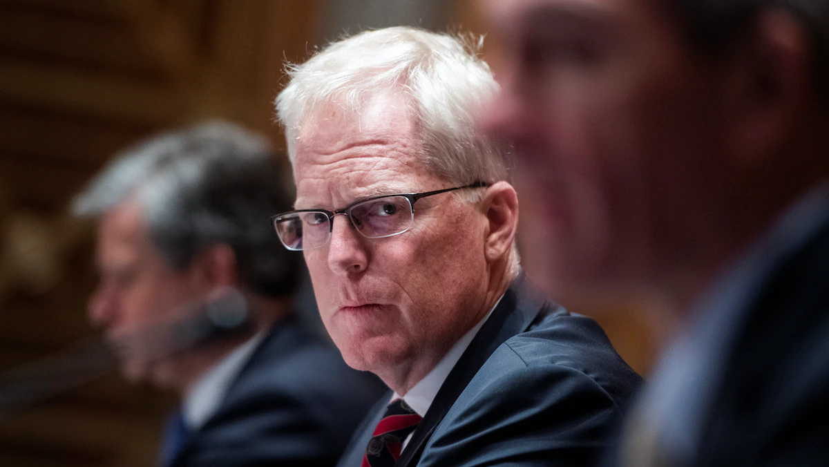 كريستوفر ميلر يتوسط مسؤولين أمنيين خلال جلسة لمجلس الشيوخ في ديسمبر 2020 - REUTERS