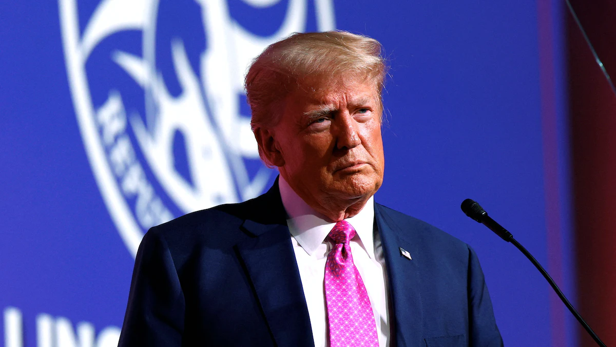 الرئيس الأميركي السابق والمرشح الجمهوري للرئاسة دونالد ترمب يحضر عشاء يوم لينكولن للحزب الجمهوري في مقاطعة أوكلاند في الولايات المتحدة. 25 يونيو 2023 - REUTERS