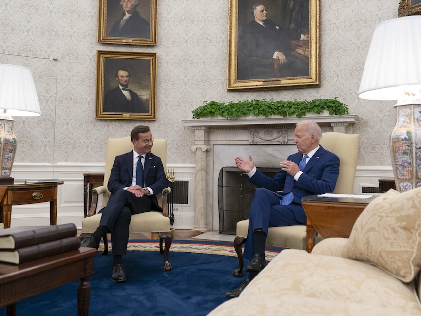 وعلى غرار العديد من حلفائها، تريد الولايات المتحدة أن تنضمّ السويد إلى حلف شمال الأطلسي بحلول انعقاد قمة الحلف يومَي 11 و12 يوليو في فيلنيوس، وذلك بعد انضمام فنلندا المجاورة إلى الحلف في الرابع من أبريل.