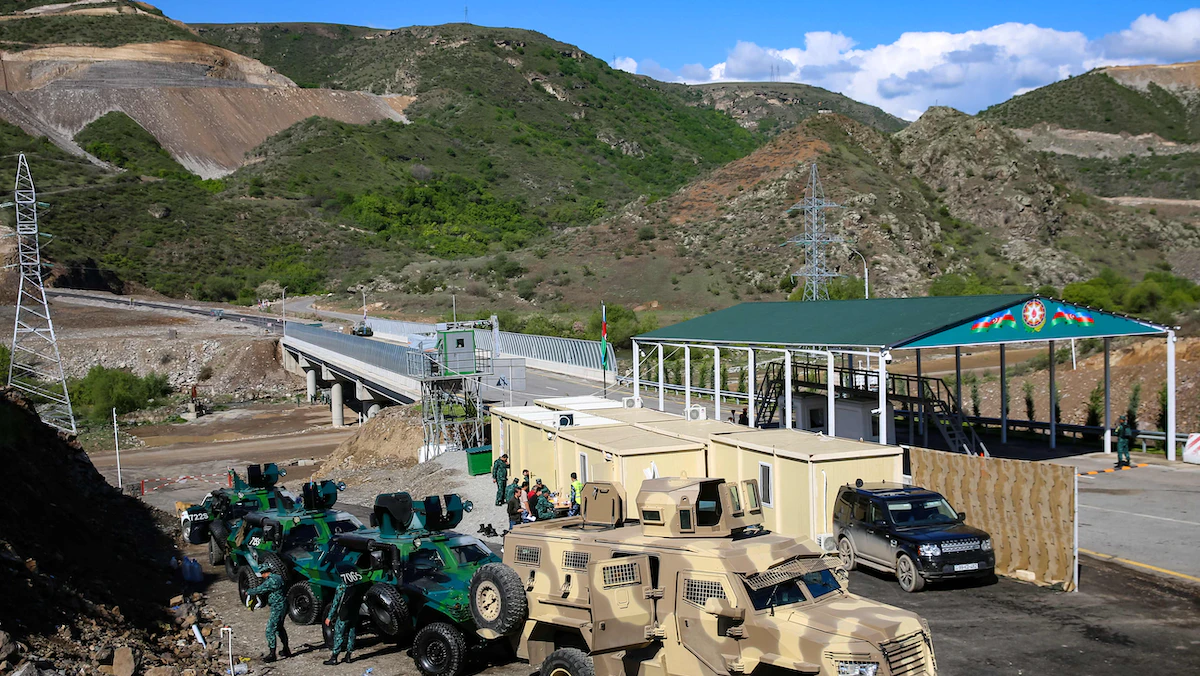 نقطة تفتيش أذربيجانية أقيمت مؤخراً عند مدخل ممر لاتشين الرابط بين منطقة ناجورنو قره وأرمينيا. 2 مايو 2023 - AFP