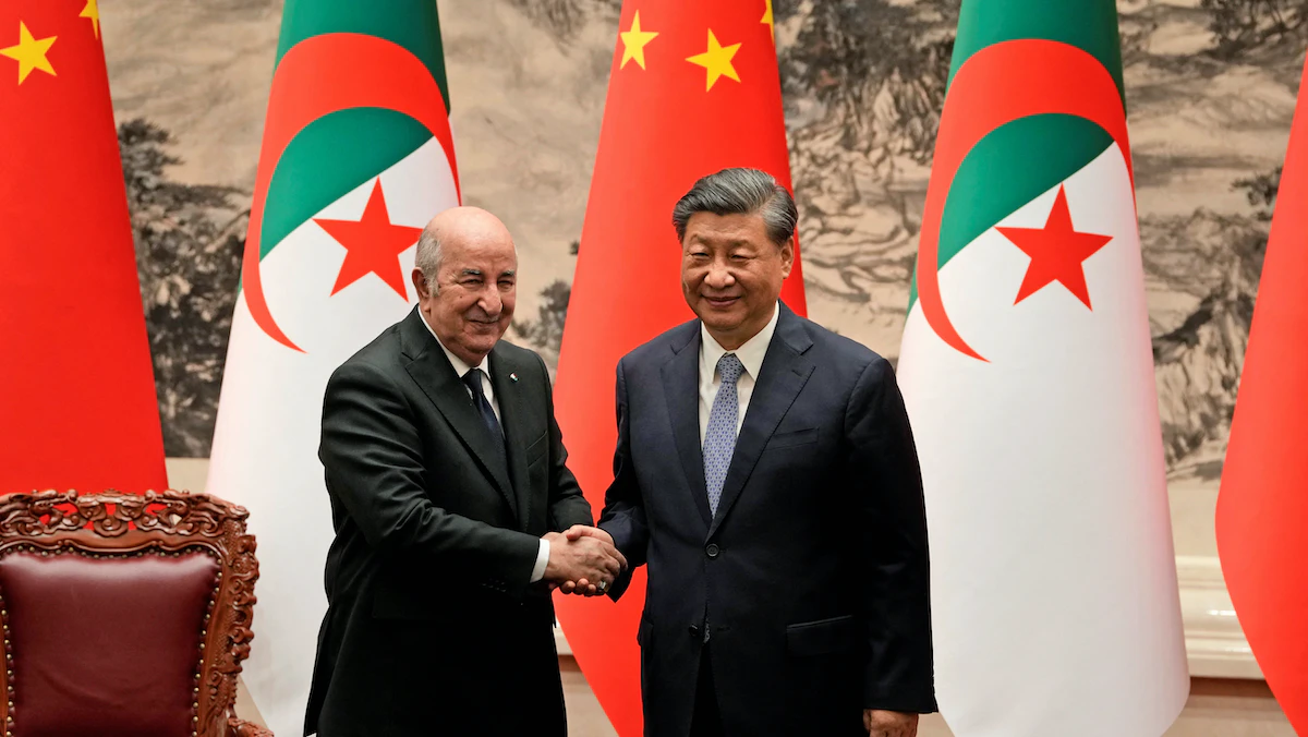 وقال الرئيس الصيني شي جين بينج في اجتماع ببكين مع تبون، إن الصين والجزائر ستعمقان التعاون في مجالات تقليدية، مثل البنية التحتية والبتروكيماويات والمعادن والزراعة وتكنولوجيا الفضاء، والطاقة النووية، والمعلومات والاتصالات والطاقة المتجددة، وفق ما أوردت وكالة "رويترز".