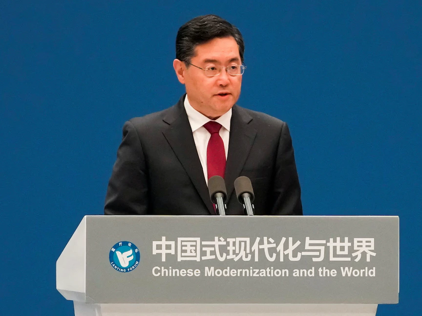 وشغل تشين منصب سفير بكين في الولايات المتحدة منذ عام 2021 حتى تعيينه وزيراً للخارجية قبل نحو سبعة أشهر. واكتسب شهرته، بعد تعيينه ناطقاً باسم وزارة الخارجية في عام 2005، إذ واجهت الصين توترات دولية متزايدة، بشأن حقوق الإنسان وسياساتها الصارمة في التبت وشينج يانج.