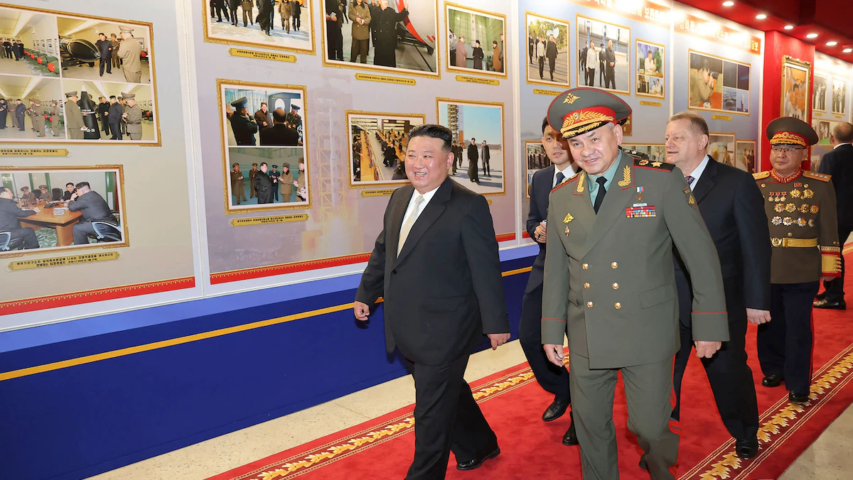 ووفقاً لوكالة الأنباء المركزية الكورية الشمالية (KCNA)، زار كيم وشويجو "معرض الأسلحة 2023"، الأربعاء، رفقة مسؤولين رئيسيين، إذ قدم كيم أسلحة أنتجتها بلاده في إطار خطتها لتطوير الدفاع الوطني، وشارك بآرائه حول الاتجاه العالمي لتطوير الأسلحة واستراتيجيتها والأجندة الأمنية التي تواجه البلدين.