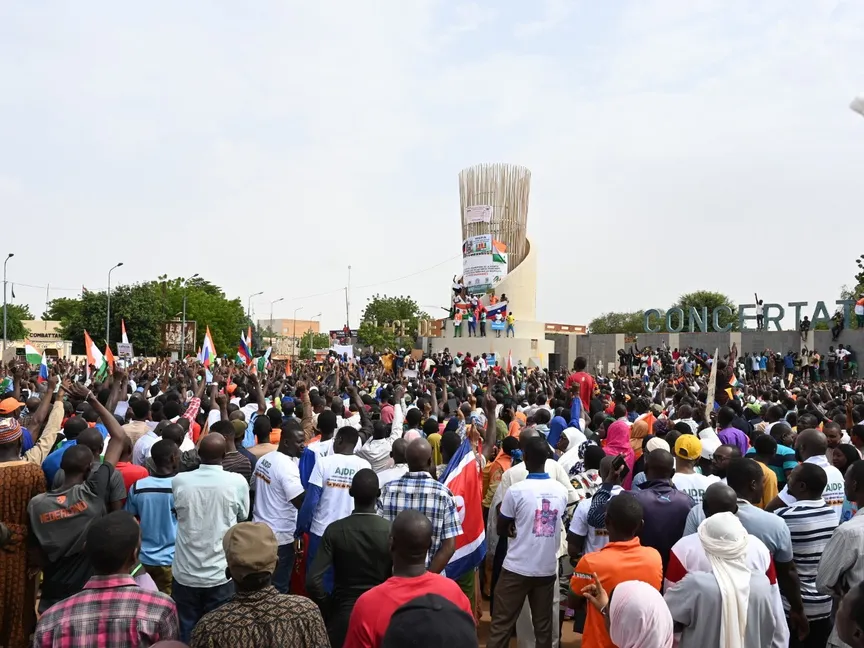 حشد من أنصار الانقلاب في عاصمة النيجر نيامي. 20 أغسطس 2023 - AFP