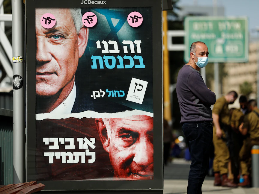 وفاز "أزرق أبيض" بزعامة غانتس رئيس هيئة الأركان السابق، في انتخابات مارس 2020، بـ33 مقعداً، قبل أن يفشل في تشكيل ائتلاف في البرلمان المكون من 120 مقعداً.