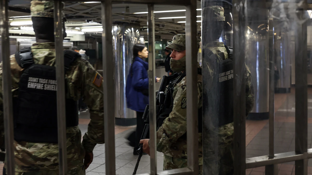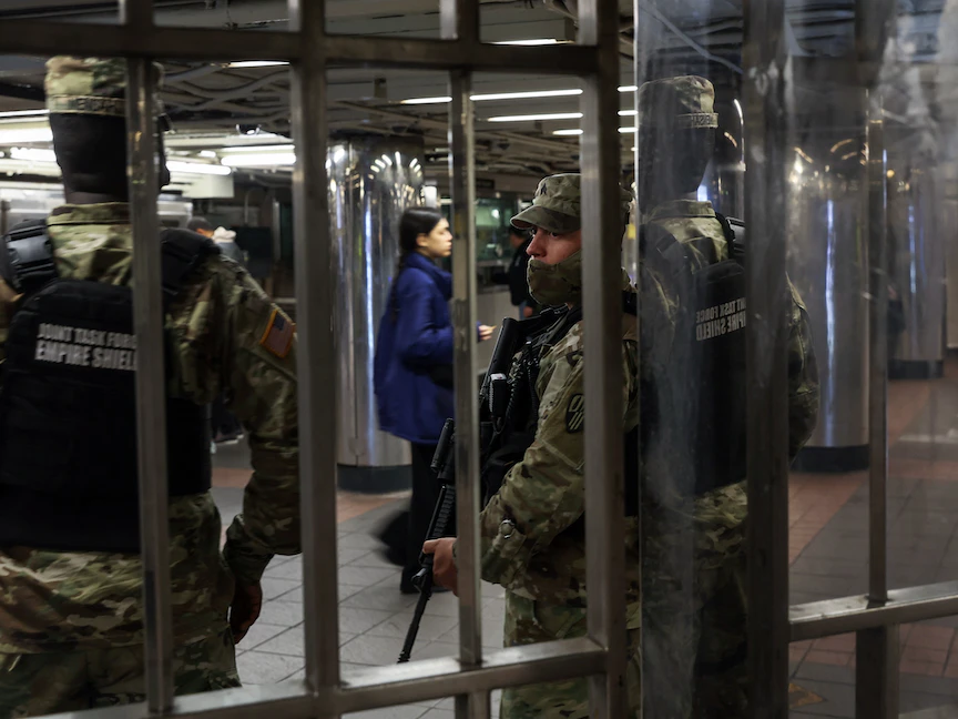 عناصر من الحرس الوطني الأميركي في دورية داخل محطة مترو أنفاق في نيويورك - 6 مايو 2022 - REUTERS