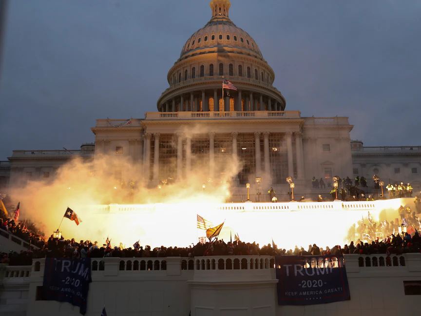 قوات الأمن الأميركية تطلق الغاز المسيل للدموع لتفريق أنصار ترمب بعد اقتحامهم مقر الكونغرس في العاصمة واشنطن - REUTERS