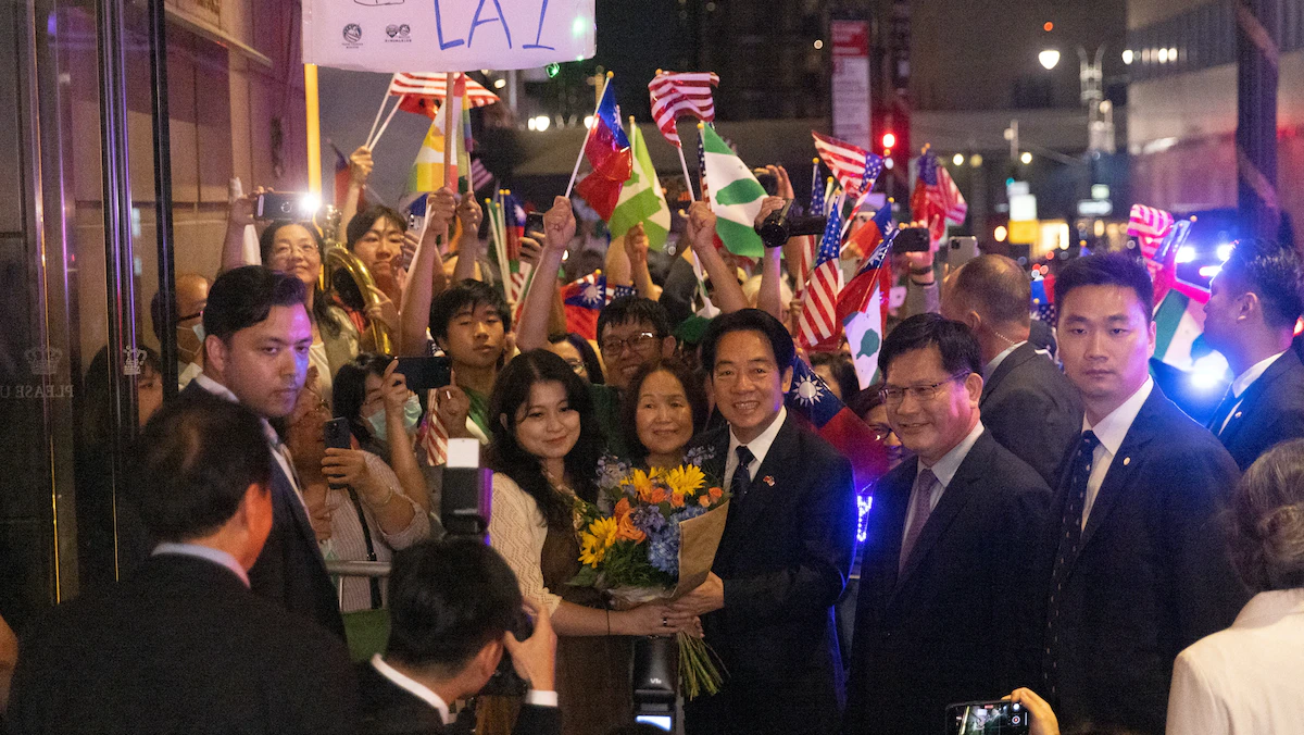 وبعد أن استقبله أنصار يلوحون بالأعلام لدى وصوله إلى فندق في نيويورك، كتب نائب رئيسة تايوان على تويتر أنه "سعيد بالوصول إلى التفاحة الكبيرة (لقب مدينة نيويورك)، رمز الحرية والديمقراطية والفرص".