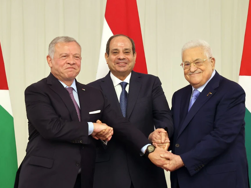 طالب قادة مصر والأردن وفلسطين، إسرائيل بإنهاء احتلالها للأراضي الفلسطينية، ووقف أنشطتها الاستيطانية، واحترام التزاماتها الدولية، خلال قمة ثلاثية، الاثنين، بمدينة العلمين المصرية على ساحل البحر المتوسط، لبحث تطوّرات القضية الفلسطينية.