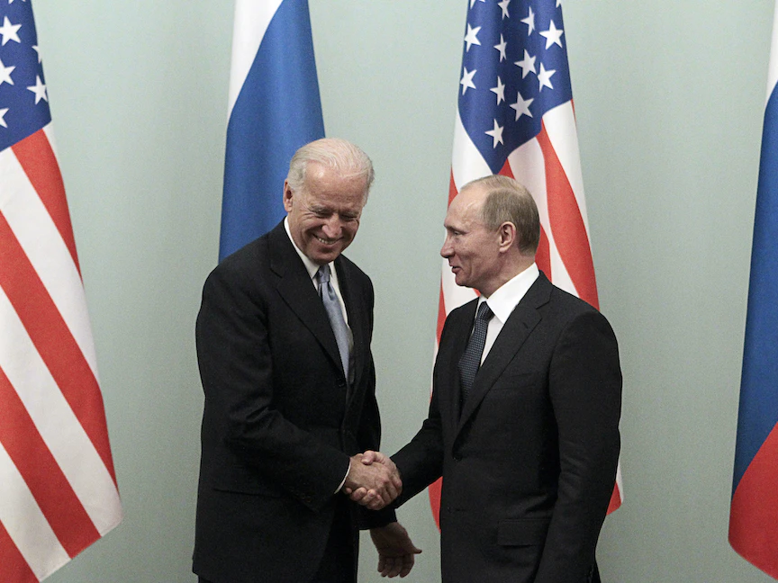 الرئيس الأميركي جو بايدن خلال لقاء سابق مع نظيره الروسي فلاديمير بوتين في موسكو، 10 مارس 2011 - REUTERS