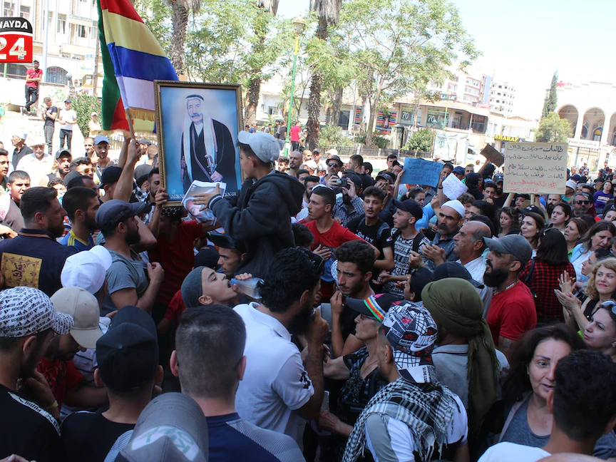 وكان الشيخ حكمت الهجري الرئيس الروحي لطائفة الموحدين الدروز التي تُشكل الغالبية في محافظة السويداء، أصدر بياناً قبل أيام أعلن خلاله تأييد التحركات الاحتجاجية، معبّراً في الوقت نفسه، عن قلقه إزاء الأوضاع الحالية. ودعا إلى التحرك من أجل تحقيق التغيير والعدالة.