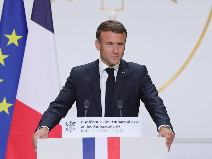 وقال الرئيس الفرنسي إيمانويل ماكرون، خلال كلمة أمام دبلوماسيين، إن السفير الفرنسي لدى النيجر سيبقى هناك رغم الضغوط.