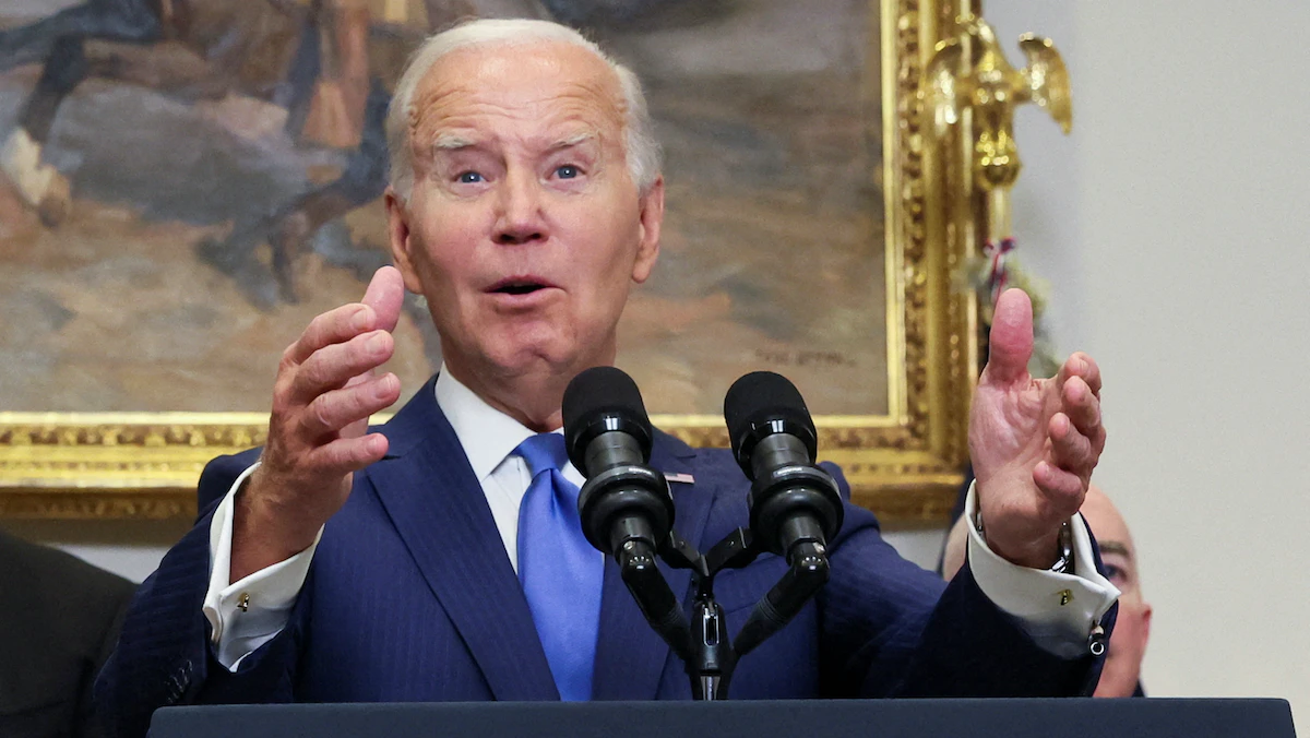الرئيس الأميركي جو بايدن يتحدث خلال مؤتمر صحافي بالبيت الأبيض في واشنطن. 30 أغسطس 2023 - REUTERS