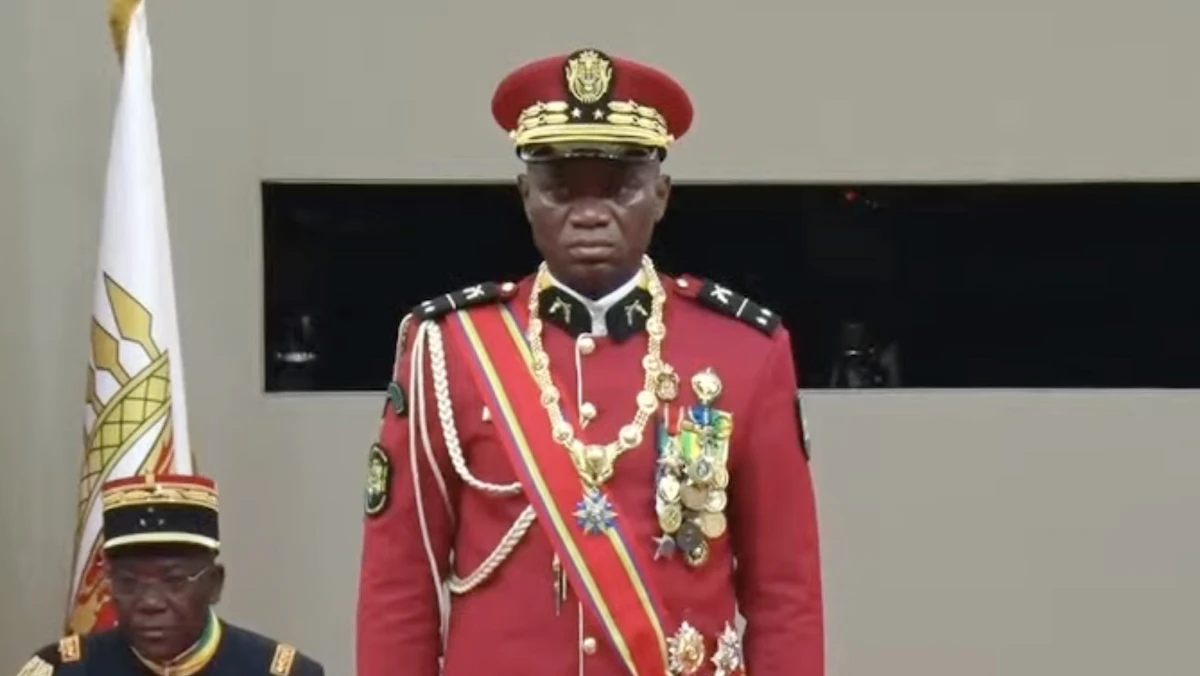 صورة من فيديو لمراسم أداء بريس أوليجي نجيما اليمين كرئيس مؤقت للجابون العاصمة ليبرفيل. 4 سبتمبر 2023