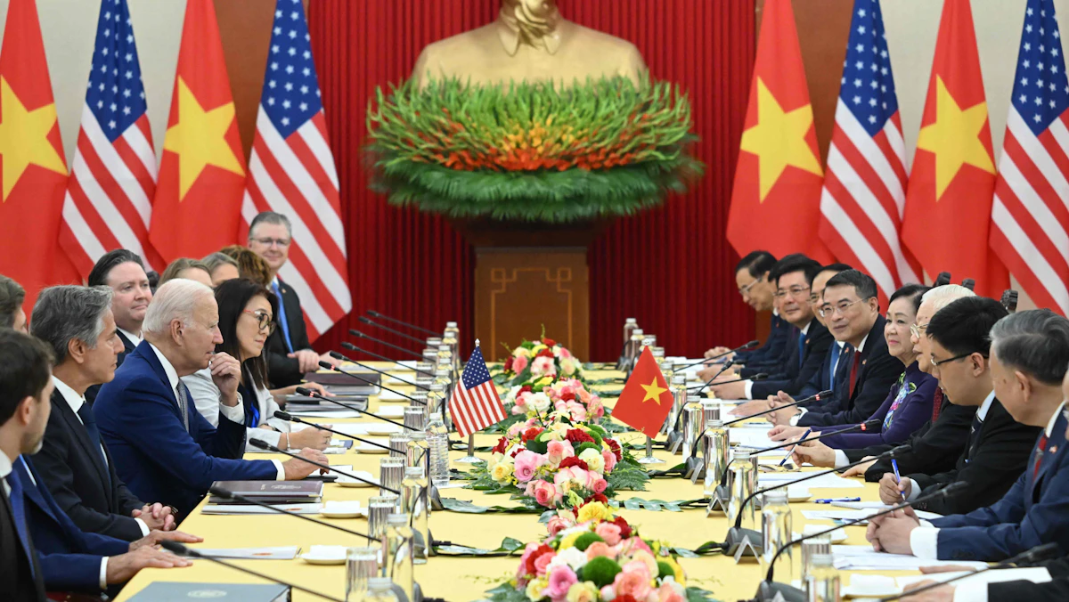 تأتي زيارة بايدن في الوقت الذي تشهد فيه العلاقات التجارية والاستثمارية الثنائية نمواً، ويحتدم النزاع الطويل الأمد في المنطقة بين فيتنام والصين بخصوص بحر الصين الجنوبي.