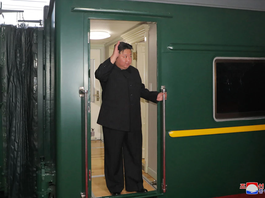ونشرت وكالة الأنباء المركزية الكورية، صباح الثلاثاء، صوراً لمغادرة الزعيم الكوري الشمالي إلى روسيا.