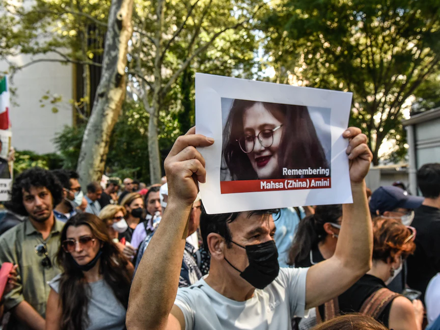 وتوفيت أميني، وهي إيرانية كردية، في 16 سبتمبر 2022 وعمرها 22 عاماً بعد اعتقالها بتهمة مخالفة قواعد الزي الإلزامية في إيران. وأشعلت وفاتها فتيل احتجاجات مناهضة للحكومة استمرت شهوراً، وكانت بمثابة أبرز مظهر لمعارضة السلطات الإيرانية منذ سنوات.