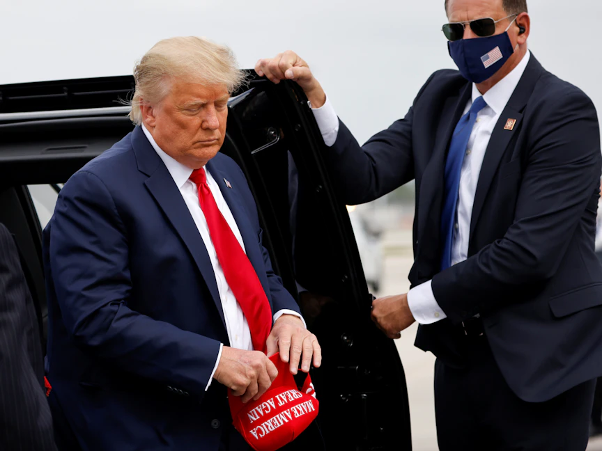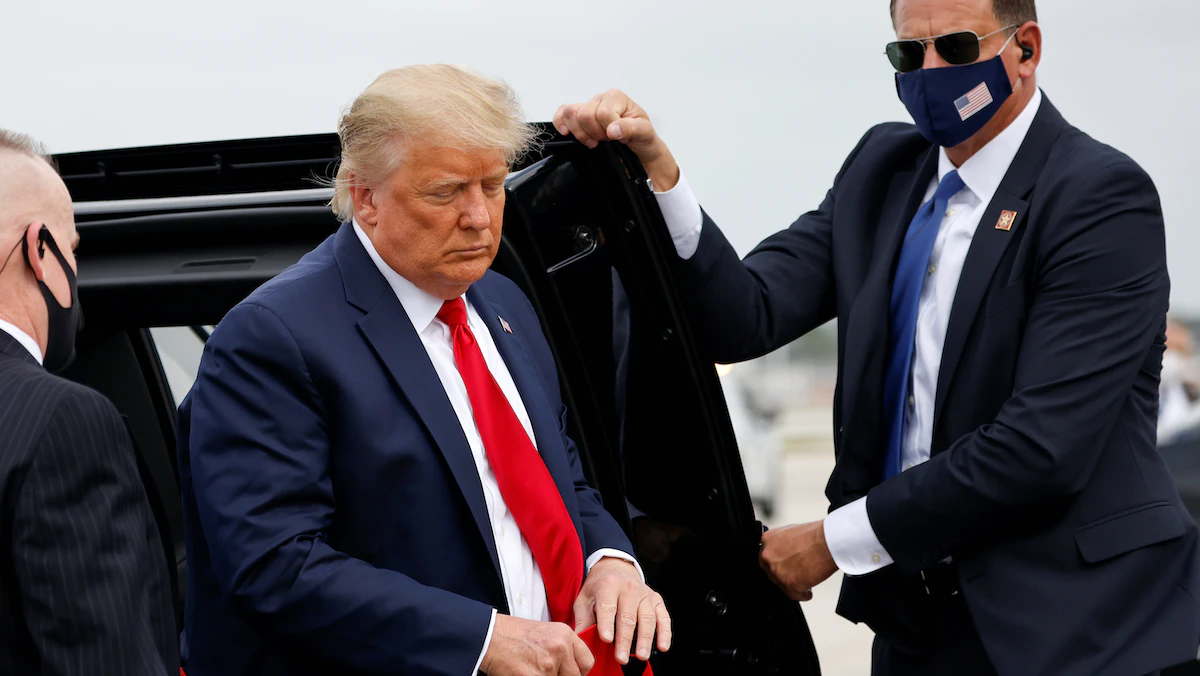 ترمب خلال وصوله إلى مطار ميامي لإلقاء كلمة أمام أنصاره في فلوريدا، 2 نوفمبر 2020 - REUTERS