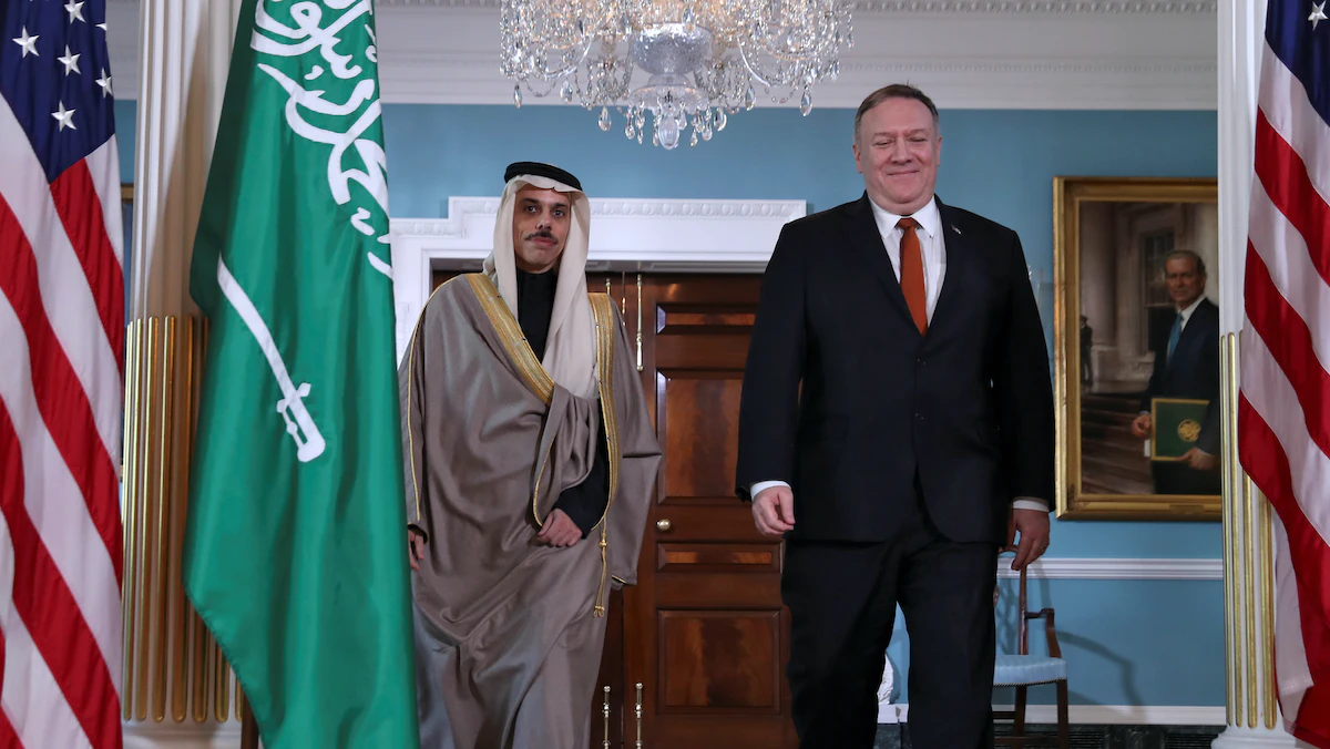 وزير الخارجية الأميركي مايك بومبيو ونظيره السعودي فيصل بن فرحان قبيل مؤتمر صحافي في واشنطن - فبراير 2020 - REUTERS