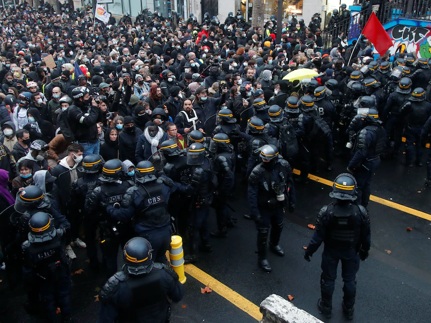 تظاهر الآلاف السبت، للأسبوع الثالث على التوالي في شوارع باريس وغيرها من المدن الفرنسية، احتجاجاً على مشروع قانون "الأمن الشامل"، الذي يعتبرون أنه "يقضي على الحريات".