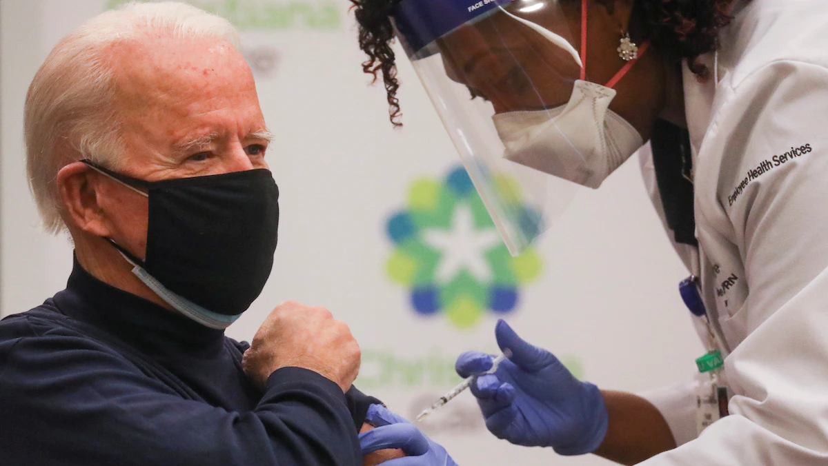 تلقى الرئيس الأميركي المنتخب جو بايدن، الاثنين، اللقاح المضاد لفيروس كورونا المستجد بمستشفى كريستيانا بنيوارك في ولاية ديلاوير، أمام كاميرات التلفزيون.