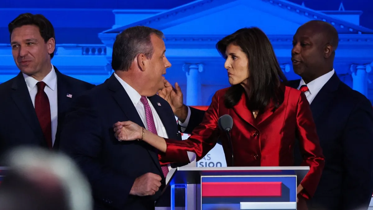 ووسط كثير من المقاطعات والمعارضات، تحول منسقو المناظرة إلى حاكم نيو جيرسي السابق كريس كريستي لسؤاله بشأن ما إذا كانت الولايات المتحدة "ركزت أكثر من اللازم" على أوكرانيا و"بشكل غير كاف" على تهديدات تشكيل الصين وروسيا وإيران لعلاقات وثيقة.