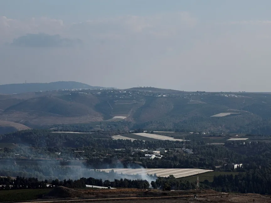 الدخان يتصاعد قرب بلدة مارون الراس عند الحدود اللبنانية الإسرائيلية. 11 أكتوبر 2013 - Reuters