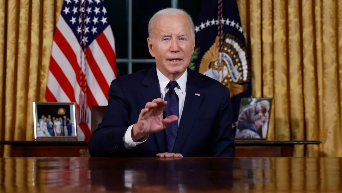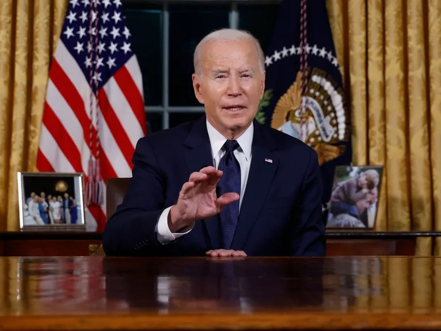 ألقى بايدن خطابه النادر من المكتب البيضاوي، وهو الثاني من نوعه منذ بدء ولايته، وكان الأول في يونيو الماضي، وأظهر فيه تضامنه المطلق مع إسرائيل، ودعا إلى تقديم المساعدات الإنسانية للفلسطينيين، وركز على ما سماه الخسائر المميتة التي سببها الصراع للمدنيين الفلسطينيين، وحذر من تصاعد موجة معاداة السامية والإسلاموفوبيا في الولايات المتحدة، خاصة بعد حادث وفاة طفل أميركي على يد متطرف أميركي.