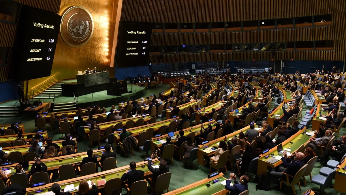 ويمثّل القرار أول رد رسمي للأمم المتحدة على تصاعد العنف جراء العدوان الإسرائيلي على غزة والضفة الغربية منذ هجمات السابع من أكتوبر، بعد أن فشل مجلس الأمن الدولي 4 مرات في اتخاذ إجراء خلال الأسبوعين الماضيين.