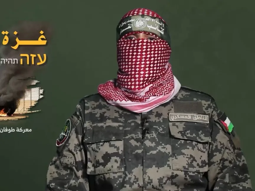 صورة مأخوذة من مقطع مصور للناطق باسم كتائب القسام الجناح العسكري لحركة حماس أبو عبيدة. 31 أكتوبر 2023 - .