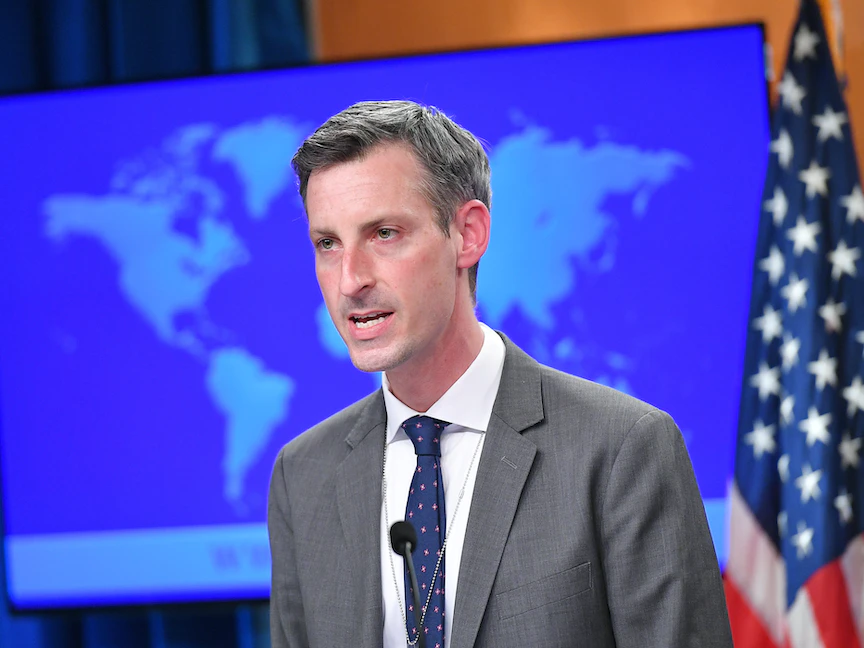 الناطق باسم وزارة الخارجية الأميركية نيد برايس خلال مؤتمر صحافي في العاصمة واشنطن- 30 مارس 2021 - REUTERS