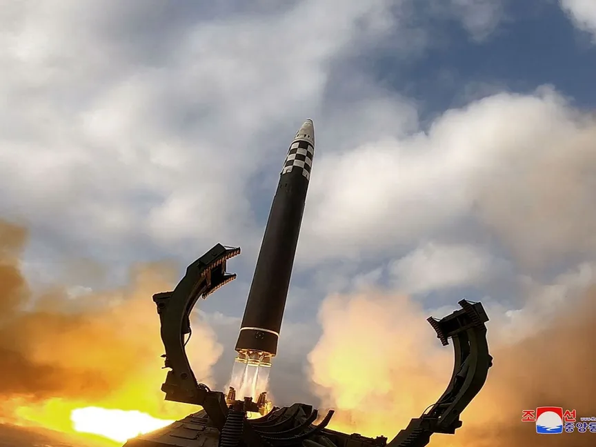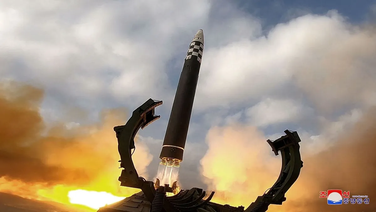 جانب من اختبار إطلاق أحدث صواريخ كوريا الشمالية العابرة للقارات "هواسونج-17". 18 نوفمبر 2022 - AFP