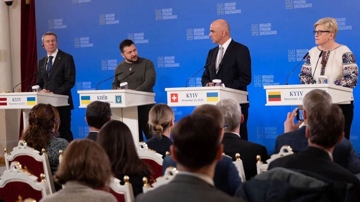 وجاءت تصريحات زيلينسكي، بعد أن قالت السلطات الأوكرانية في وقت سابق، السبت، إن روسيا هاجمت أوكرانيا باستخدام 75 طائرة مسيرة خلال الليل، وهو أكبر هجوم من نوعه في الحرب. وتم اختصار المؤتمر الصحافي المشترك للزعماء الثلاثة؛ بسبب إطلاق صفارات الإنذار للتحذير من غارة جوية أخرى.