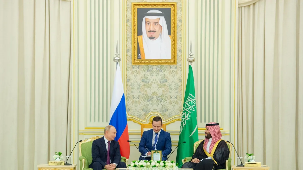 واعتبرت وكالة "واس" أن زيارة الرئيس الروسي للمملكة، تأتي "امتداداً لجهود ولي العهد في التواصل مع الأطراف الدولية المؤثرة بهدف تنسيق العمل الدولي المشترك الرامي لوقف العمليات العسكرية في غزة".