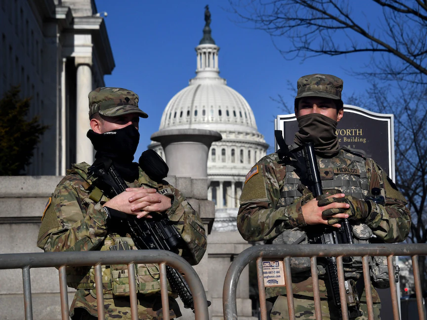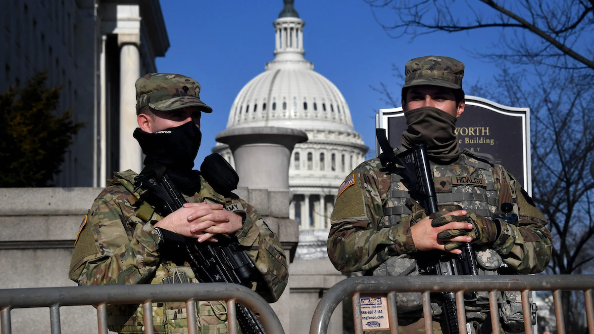 جنود الحرس الوطني الأميركي يحرسون مبنى الكابيتول بواشنطن العاصمة- 14 يناير 2021 - AFP
