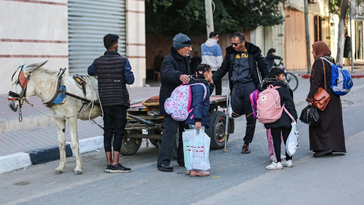 وفي أحد شوارع مخيم البريج، خرج كثيرون مع حقائب وحقائب ظهر، ممتطين عربات تجرها حمير.