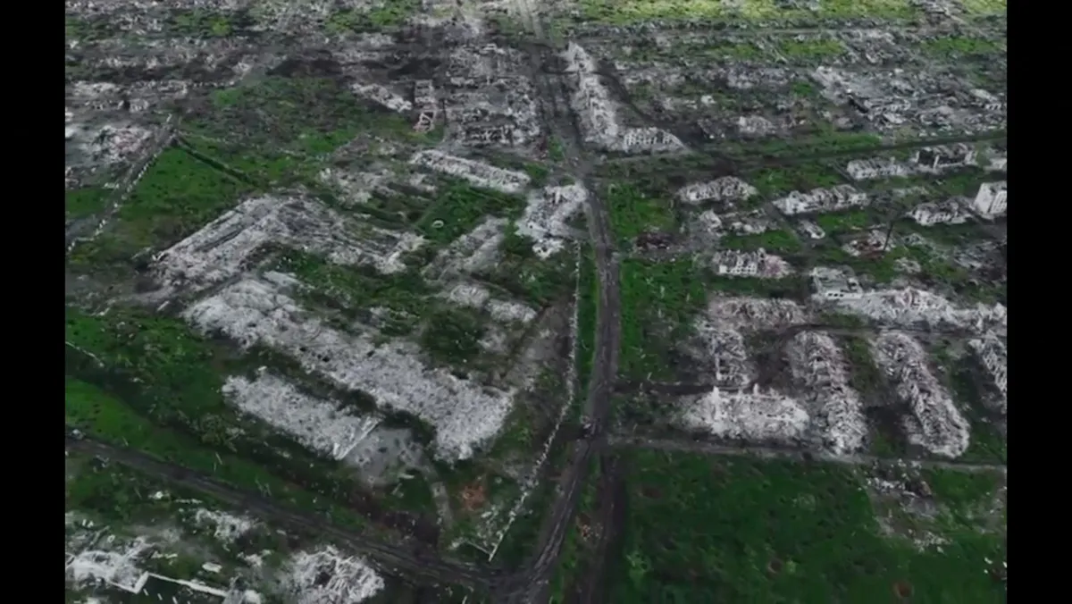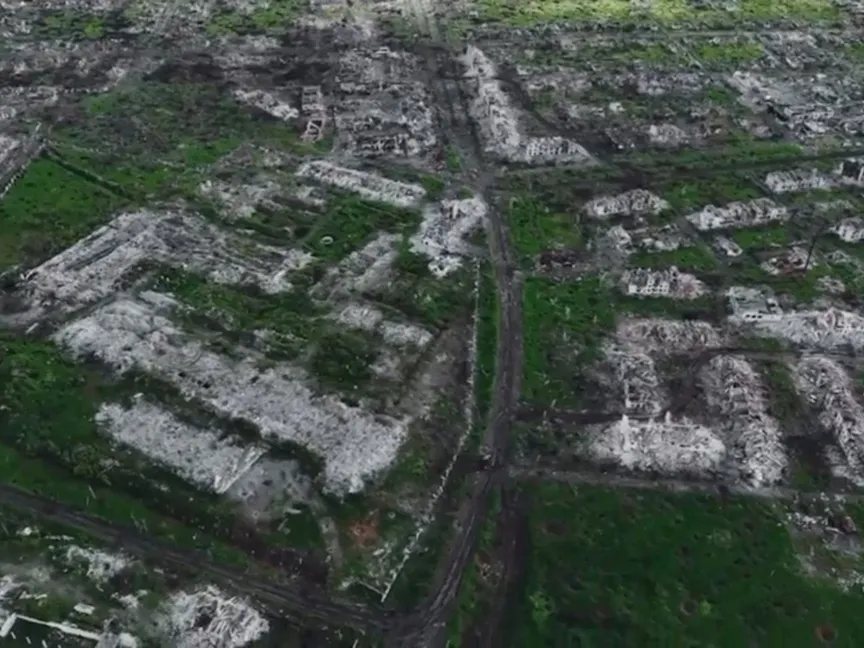 تصوير جوي للدمار الذي لحق بلدة مارينكا قرب دونيتسك في شرق أوكرانيا. 12 مايو 2023 - REUTERS