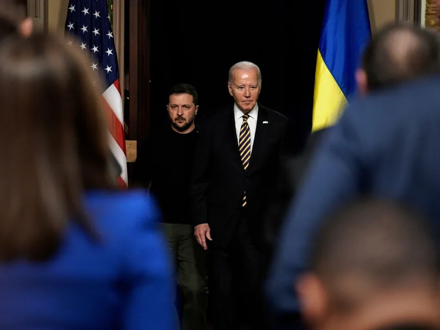 ومع تراجع الدعم العسكري الأميركي بسرعة في الكونجرس، وفشل الهجوم الأوكراني المضاد الذي تباهى به زيلينسكي عند إطلاقه في يونيو الماضي، تحول بايدن من القول إن الولايات المتحدة ستدعم أوكرانيا "طالما استغرق ذلك من وقت"، إلى القول إن أميركا ستقدم الدعم "طالما استطعنا ذلك".