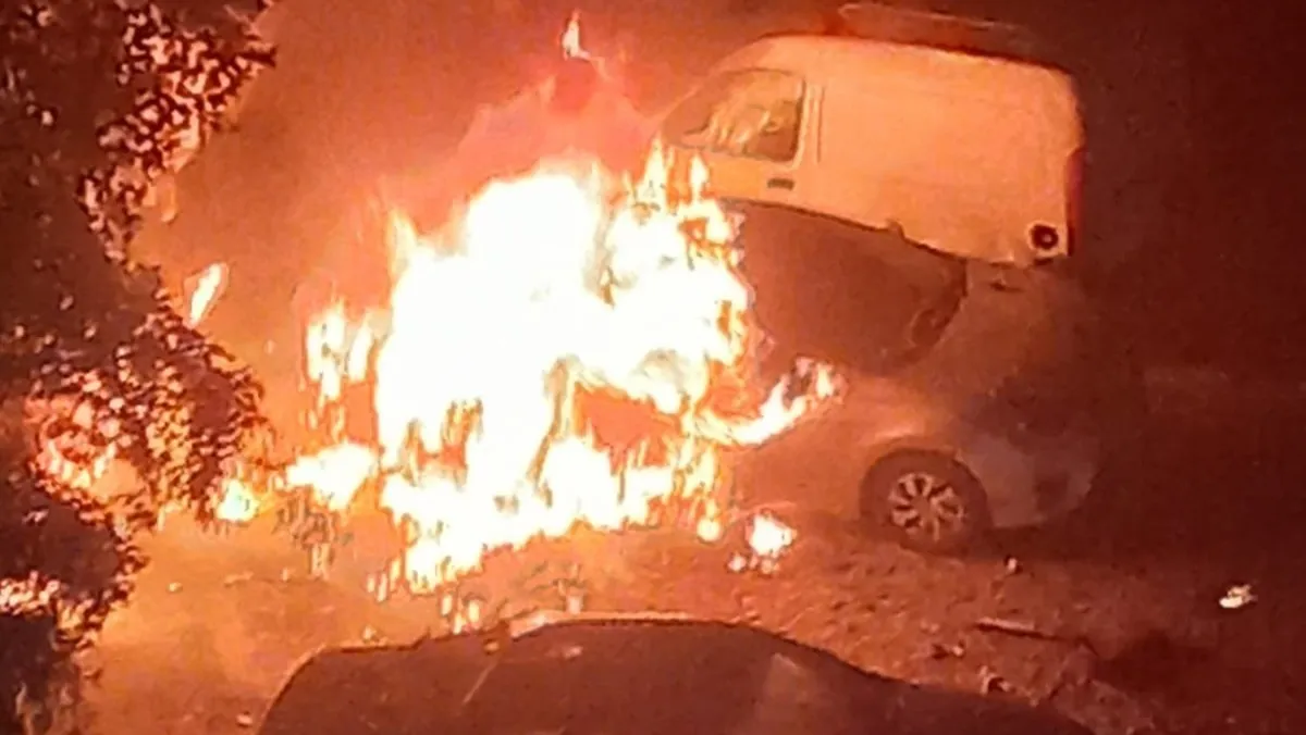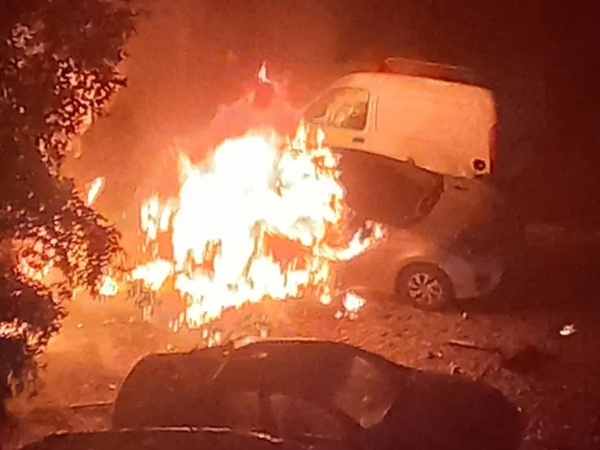 صورة متداولة لاشتعال النار في سيارة في موقع انفجار بالضاحية الجنوبية في بيروت، لبنان. 2 يناير 2024 - .