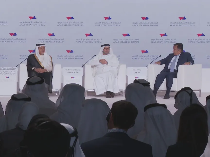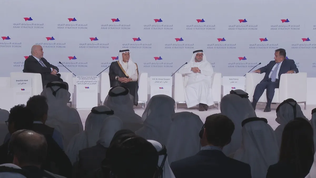 وخلال جلسة حوارية تحت عنوان "ماذا يريد العالم العربي من العالم؟"، شارك فيها رئيس المخابرات السعودية الأسبق الأمير تركي الفيصل، وأنور قرقاش، المستشار الدبلوماسي لرئيس دولة الإمارات، ووزير الخارجية المصري السابق نبيل فهمي، وأدارها الإعلامي المصري عماد الدين أديب، شدد المشاركون على ضرورة العمل على توحيد الصف العربي في مواجهة التهديدات الخارجية التي تشكلها بعض القضايا المطروحة في ظل عالم يتغير بشكل سريع.