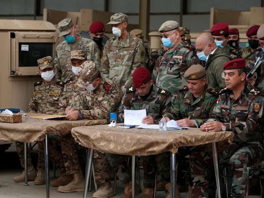جنود أميركيون وأكراد في أحد المقار العسكرية في كردستان العراق. 10 نوفمبر 2020 - REUTERS