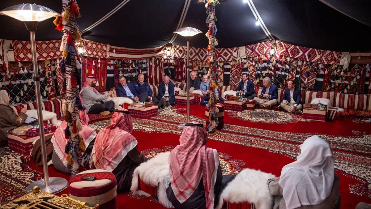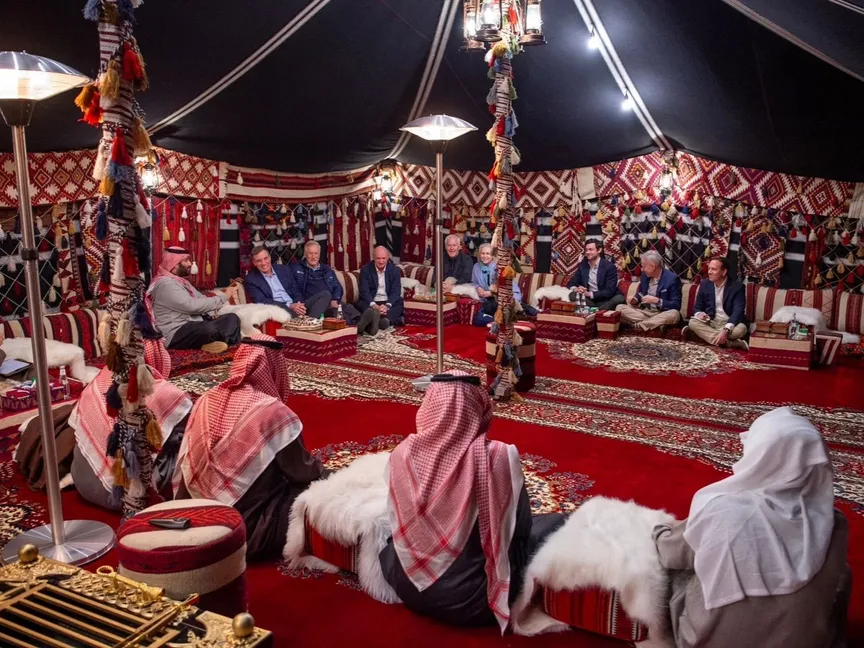 قالت وكالة الأنباء السعودية "واس"، إن ولي العهد الأمير محمد بن سلمان، استقبل، السبت، بالمخيم الشتوي في العلا، عضو مجلس الشيوخ الأميركي رئيس لجنة الاستخبارات بالمجلس السيناتور مارك وارنر، وعدد من أعضاء اللجنة.