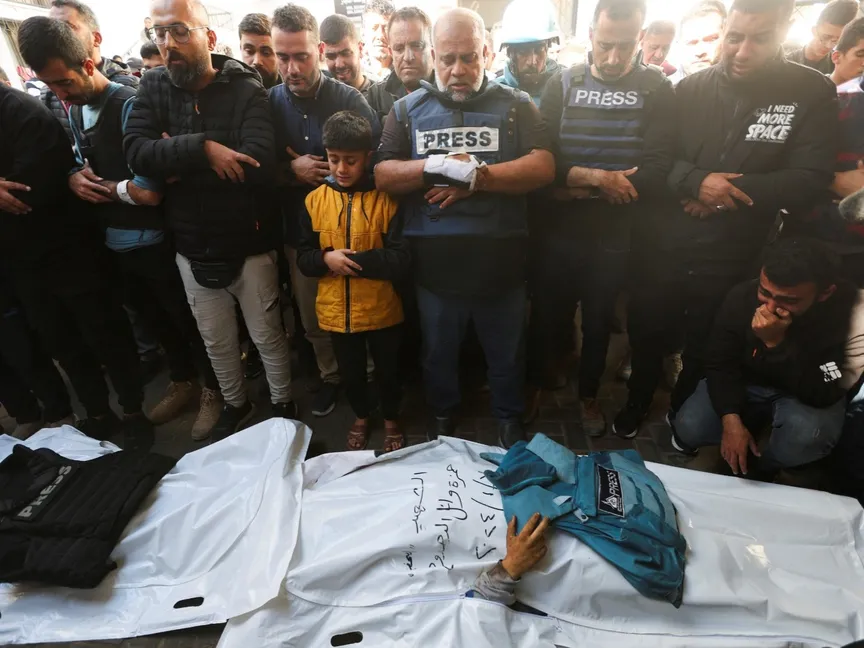 قتل الجيش الإسرائيلي، الأحد، صحافيَين فلسطينيَين، أحدهما نجل الصحافي في قناة "الجزيرة" وائل الدحدوح، وأصاب آخر، بعد استهداف سيارة كانوا يستقلونها في خان يونس بجنوب غزة، حسبما أفاد المكتب الإعلامي لحكومة القطاع.