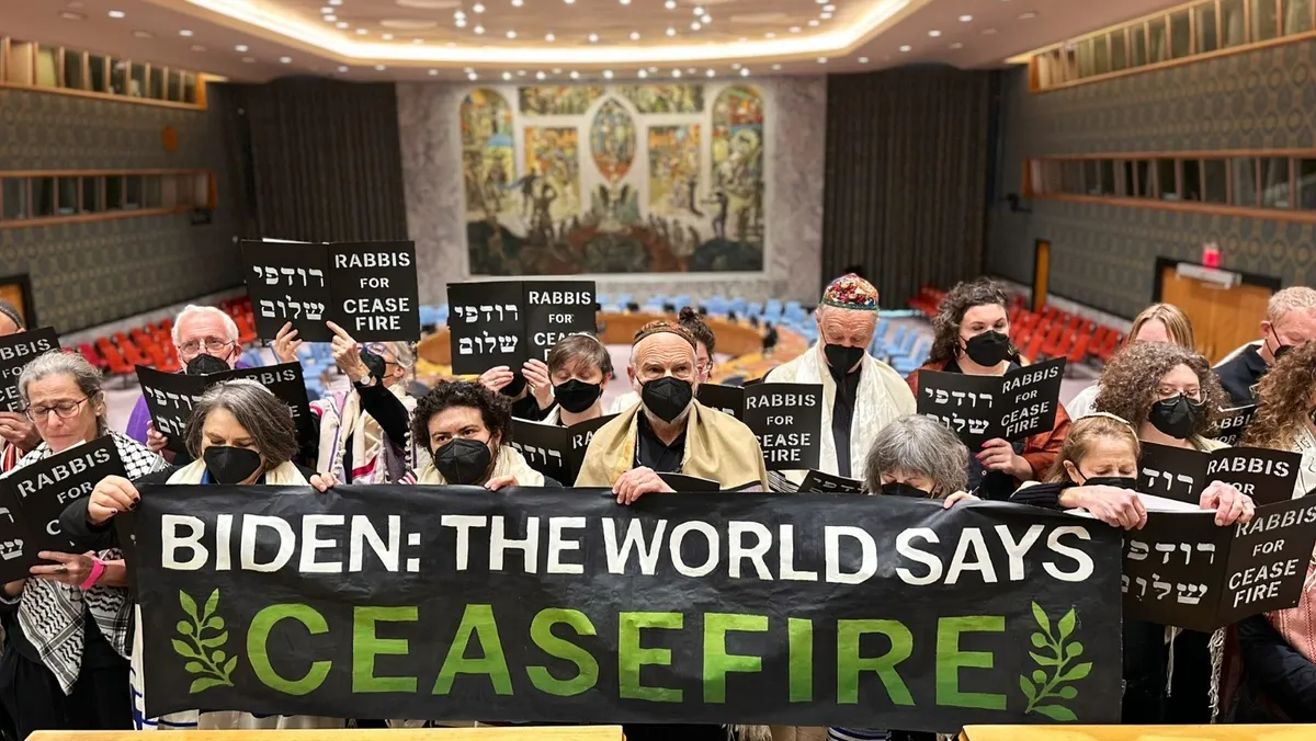 ونظمت الاحتجاجات مجموعات يهودية أميركية، منها "الصوت اليهودي من أجل السلام"، و"يهود من أجل العدالة العرقية والاقتصادية"، و"حاخامات من أجل وقف إطلاق النار". وجاء في تدوينات على مواقع التواصل الاجتماعي أن 36 حاخاماً شاركوا في الاحتجاج داخل قاعة مجلس الأمن.