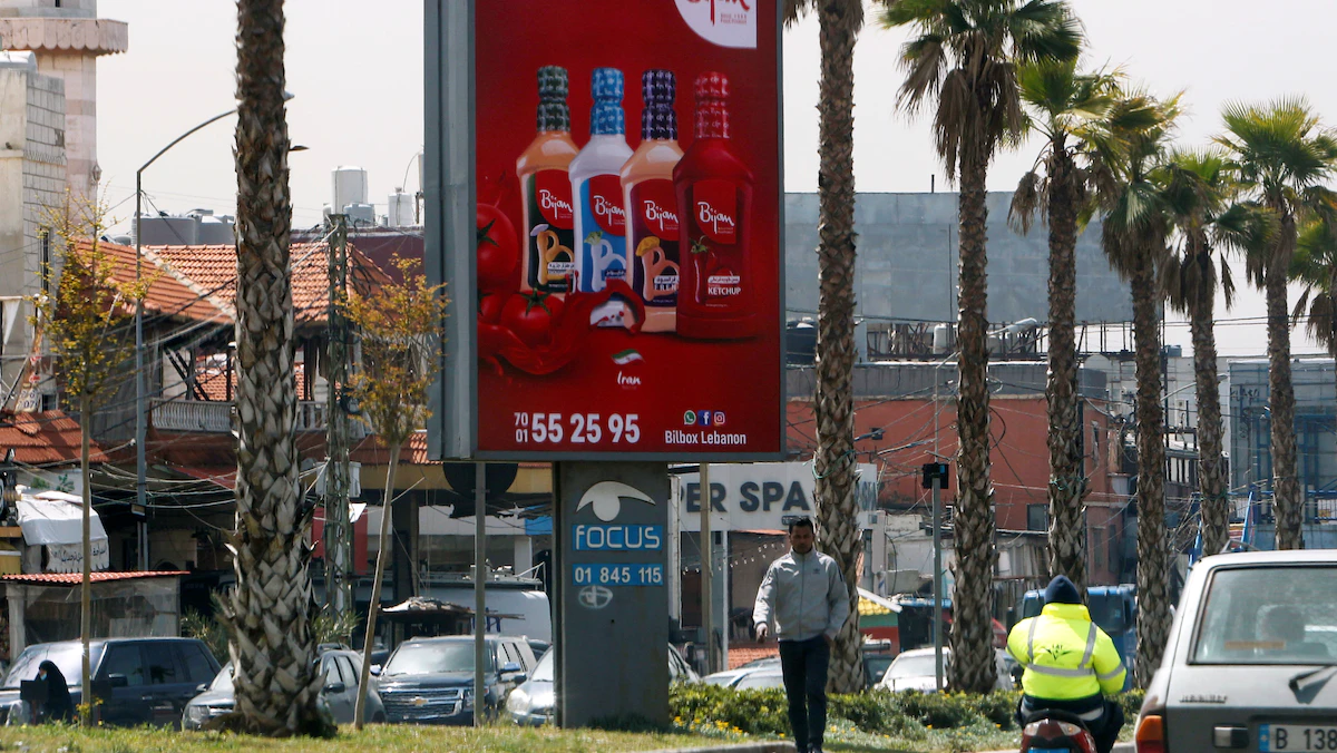 إعلان لأحد المنتجات الإيرانية في شوارع الضاحية الجنوبية لبيروت - REUTERS
