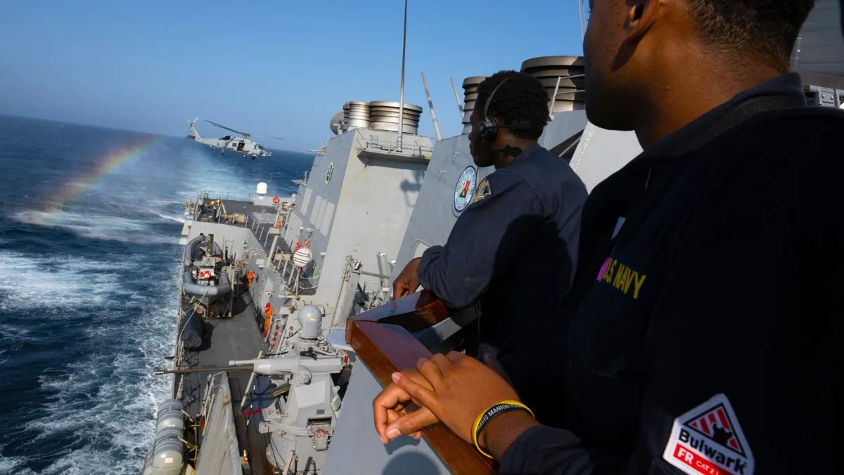 بحارة على متن المدمرة الأميركية USS Mason في البحر الأحمر. 26 ديسمبر 2023 - twitter.com/US5thFleet