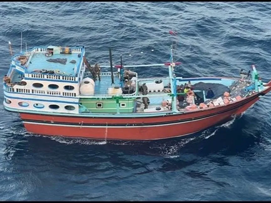 وأضافت أن قوات البحرية الأميركية، مدعومة بطائرات هليكوبتر وطائرات مُسيّرة، نفَّذت عملية صعود معقدة للمركب بالقرب من ساحل الصومال في مياه بحر العرب الدولية، وصادرت صاروخاً باليستياً إيراني الصنع ومكونات صواريخ كروز.