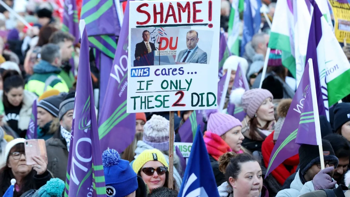 ودعت 16 نقابة تمثل قطاعات التدريس والنقل والتمريض إلى الإضراب، وتجمع المضربون في وقت مبكر من صباح الخميس، ونظموا مظاهرات في مناطق عدة أبرزها بلفاست ولندنديري.